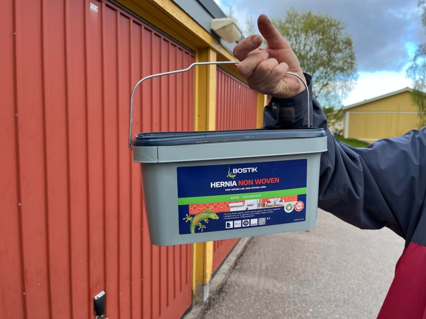 Lim för tapeter i containern